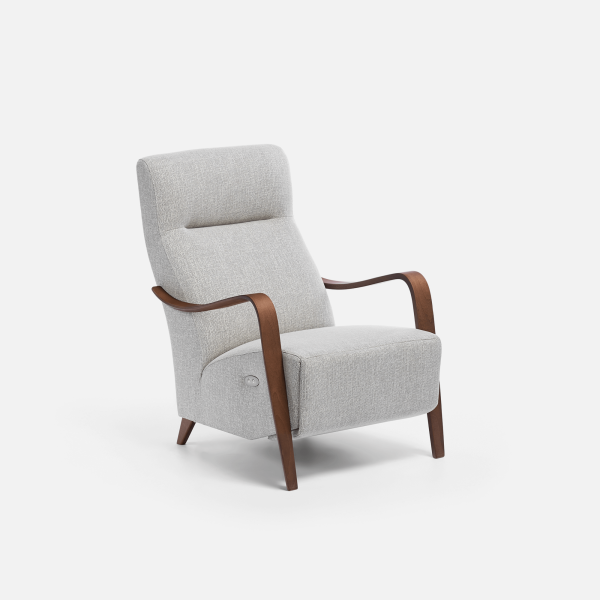 Sillón orejero con sistema de apertura y cierre del reposapiés y del respaldo, manual o a motor (con un sistema eléctrico con mando incorporado), y bolsillo incluido en uno de sus laterales.