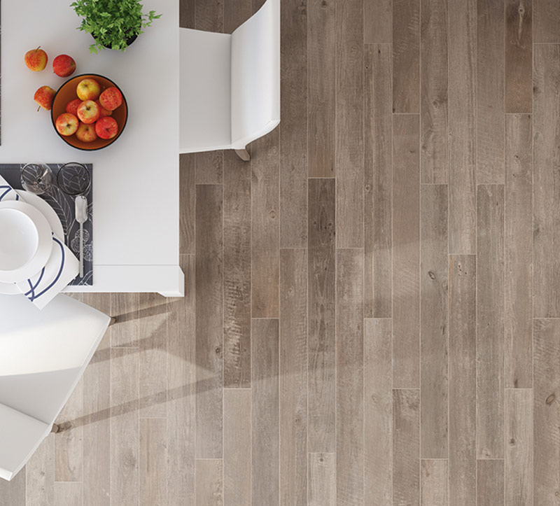 Por último, también tenemos la posibilidad de elegir, para nuestra cocina rústica, un suelo que imite la madera. Algunos fabricantes, como las firmas con las que trabajamos nosotros, consiguen acabados tan naturales que cuesta diferenciar entre un suelo de madera natural y un suelo de efecto madera como los nuestros. Eso sí, a la hora de limpiarlo no te pasará inadvertido, porque este tipo de producto resulta infinitamente más fácil de limpiar, además de ser mucho más práctico y seguro.