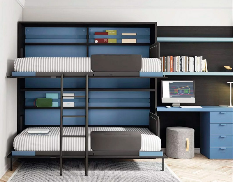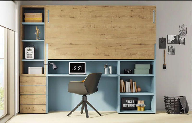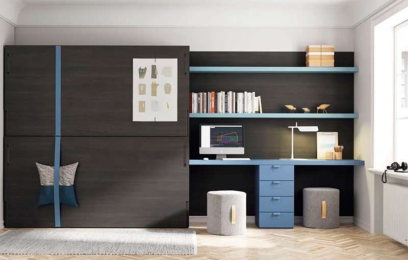 Las camas abatibles juveniles son camas ocultas, que se integran perfectamente junto a un sofá, un escritorio o un armario, como estas que compartimos contigo a continuación.