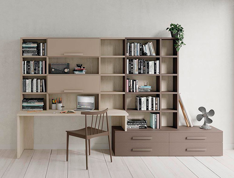 La adolescencia es una etapa clave en la construcción de la propia personalidad. Por esto, entre otras cosas, resulta importante que los jóvenes dispongan de espacio en su habitación en donde guardar y exponer sus pequeños tesoros, como recuerdos de viajes, libros y álbumes, trofeos deportivos, figuras de sus películas o series favoritas… Los módulos para juveniles son una buena opción para ello, pero también lo son las estanterías que incluyen muchos dormitorios juveniles dentro de su configuración. Y, si no se incluyen, siempre se pueden añadir estos módulos o estantes de manera adicional para satisfacer sus necesidades.