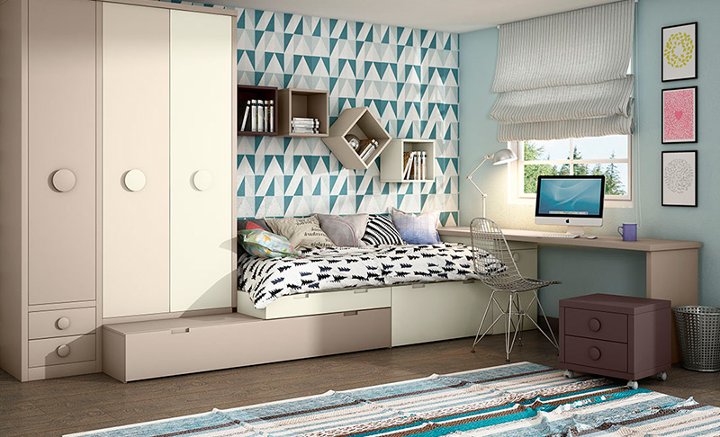 El cambio de un dormitorio infantil a una habitación juvenil supone un momento clave en la vida de cualquier adolescente. Significa dejar de lado el que ha sido, hasta entonces, su espacio de juegos, para crear una zona de estudio y de descanso, en la que se sienta cómodo y a gusto. Pero, no solo eso. Un dormitorio juvenil moderno debe reflejar la personalidad y el carácter del adolescente que lo habita, debe adaptarse a su estilo de vida y a sus intereses.