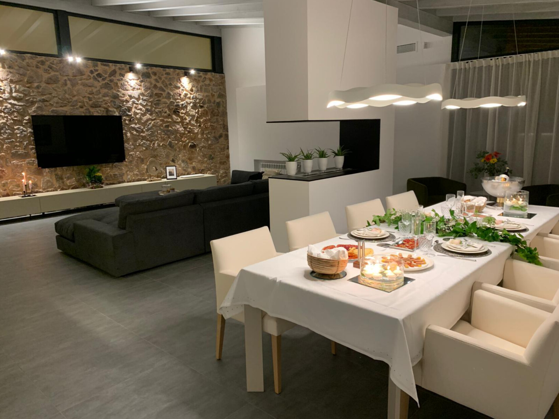 Salones modernos de mampostería, un diseño elegante y acogedor